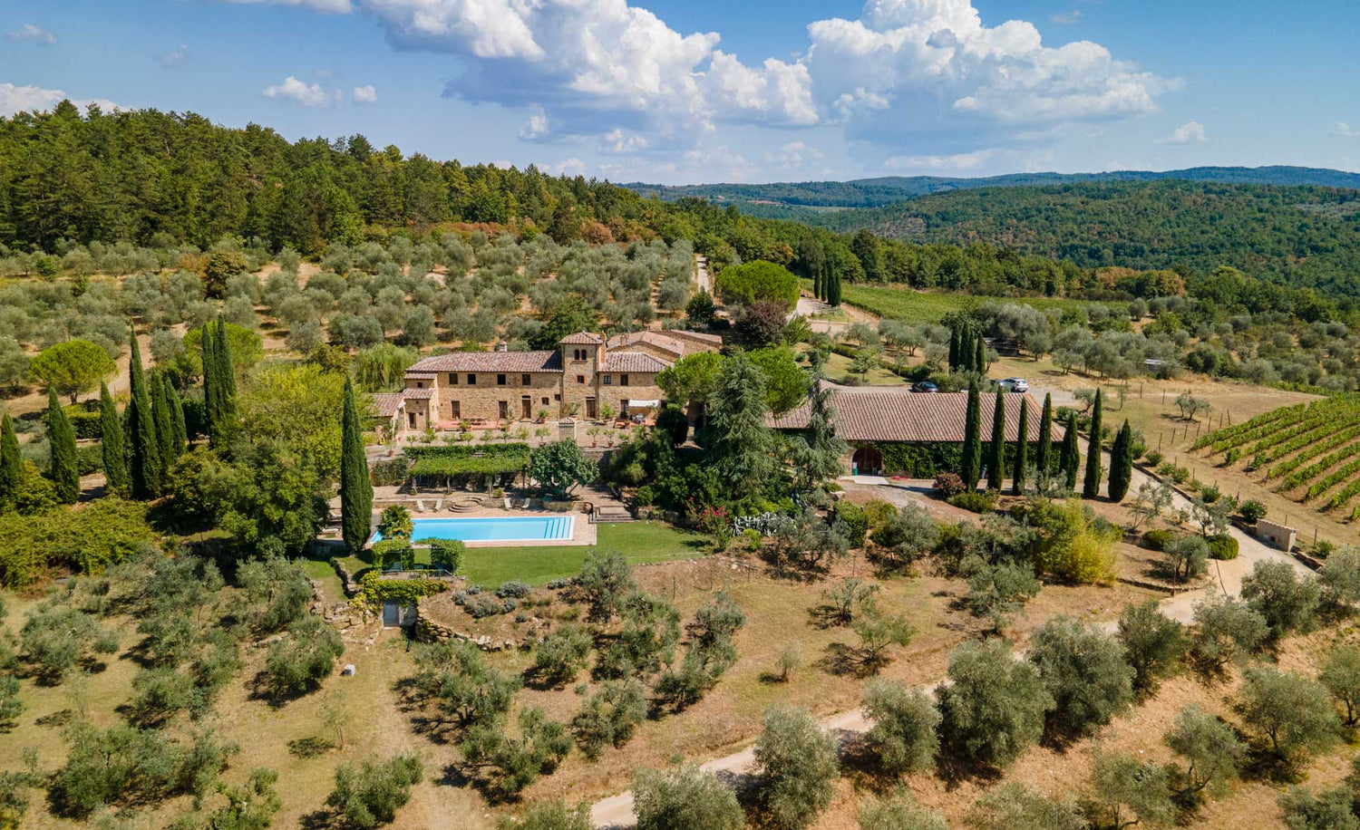 Armoniosamente immersa tra vigneti ed olivi, in parte impiantati su terrazze, Fattoria Cerbaia, circondata da ricchi boschi, è un gioco di sentieri ombreggiati propensi a rilassanti passeggiate.
